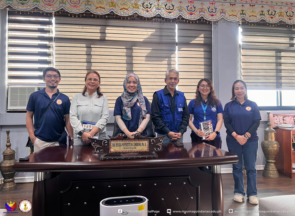 October 6, 2025 | MSU-Maguindanao Chancellor Bai Hejira Nefertiti M. Limbona, met with Mr. Kunhali Muttaje, Country Director of Islamic Relief Philippines; Ms. Epifania Divino, Programme Manager; and Mr. Riz Sunio, Communications and Advocacy Coordinator, for a consultation meeting held at the Office of the Chancellor to explore potential areas of partnership.