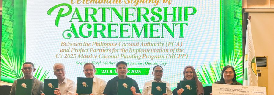 Mindanao State University–Maguindanao and the Philippine Coconut Authority (PCA), led by Administrator Dr. Dexter R. Buted, along with other project partners, formally entered into a Memorandum of Agreement (MOA) on October 22, 2025, at Sequoia Hotel, Mother Ignacia Avenue, Quezon City, to implement the Massive Coconut Planting Program (MCPP) in Maguindanao.
